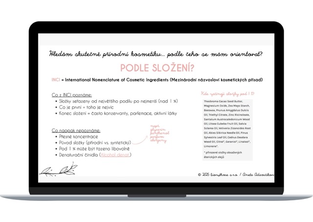 1. část (60 min) Naučíte se rozumět složení kosmetiky – a nebudete ovlivnitelná reklamami na produkty, které nejsou pro vás.